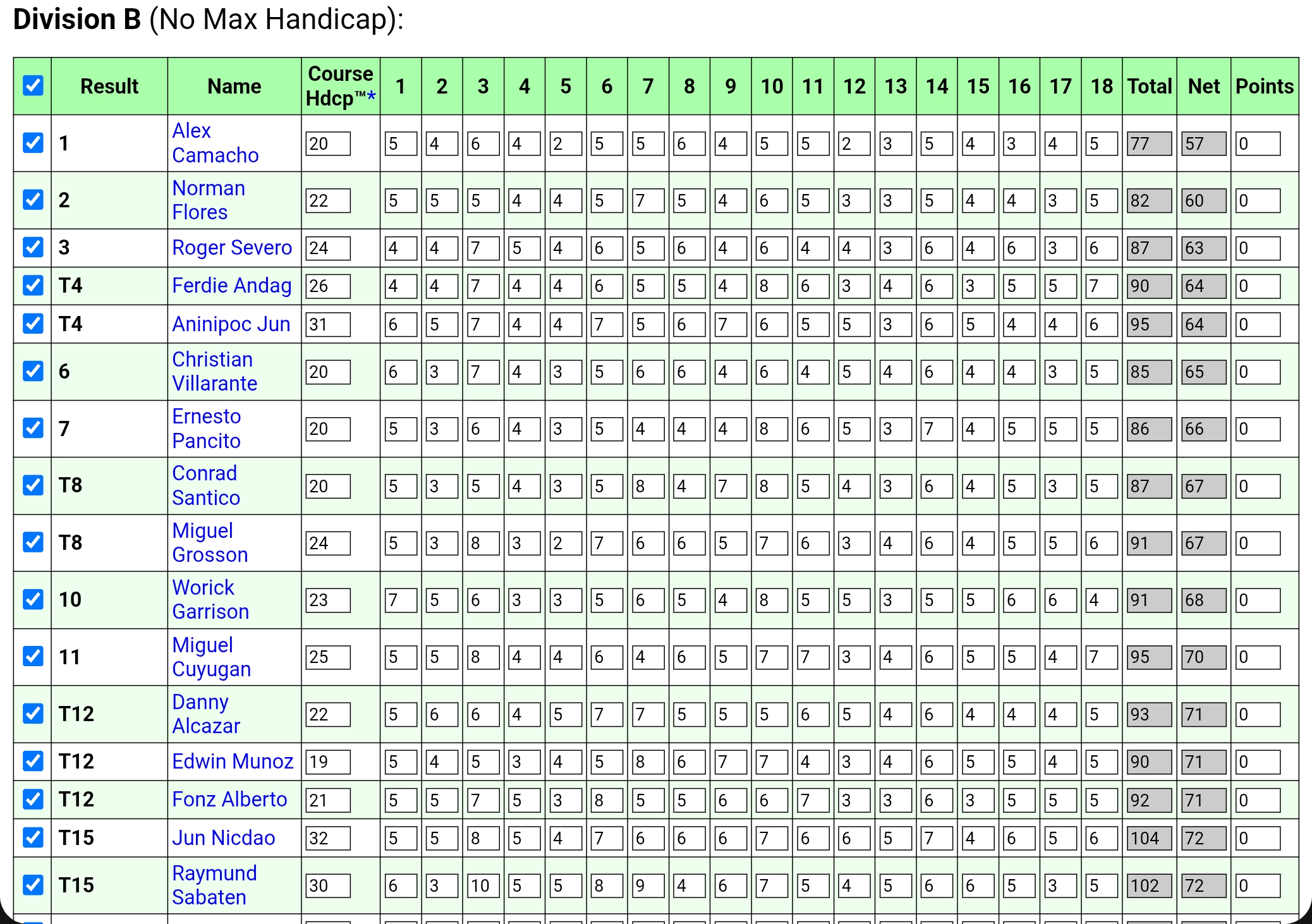 • Leaderboard Season Points