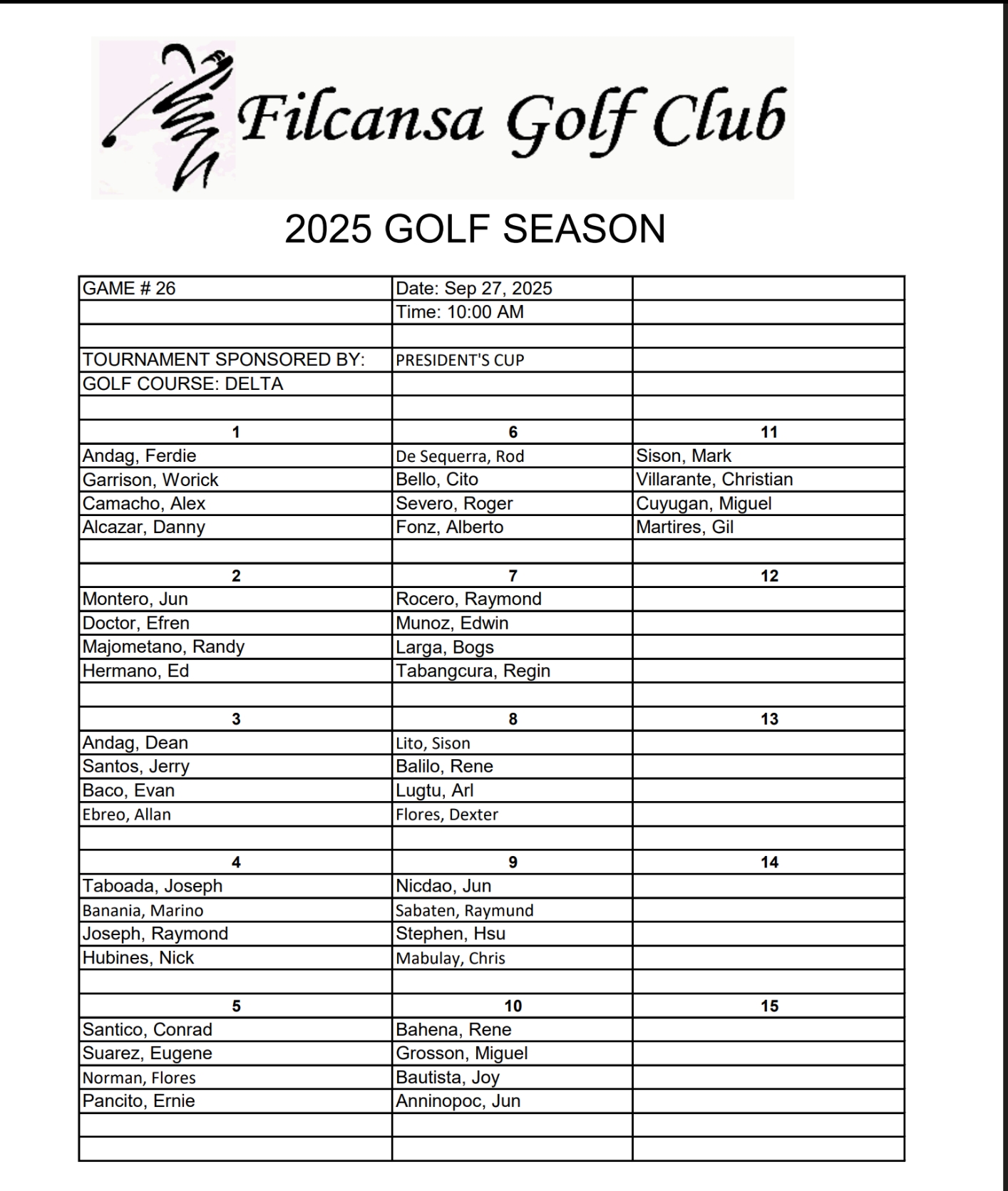 GAME #26 President's cup