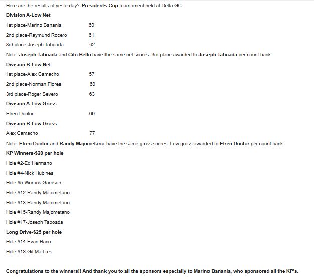 • Filcansa Cup Results